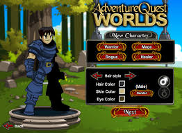 A jogabilidade do jogo Adventure Quest Worlds , se baseia em matar monstros e fazer quests. Como qualquer outro jogo multijogador, permite batalhar Player Vs Player, ele usa tempo real para batalhar simultaneamente com os outros jogadores e monstros. Numa busca, o jogador precisa conseguir os itens requiridos para completá-la. Para fazer isso, o jogador deve matar um ou vários monstros, localizar itens, explorar áreas etc. Após completá-la, o jogador receberá experiência, moedas e itens ou simplesmente desbloquear outras buscas ou lugares.